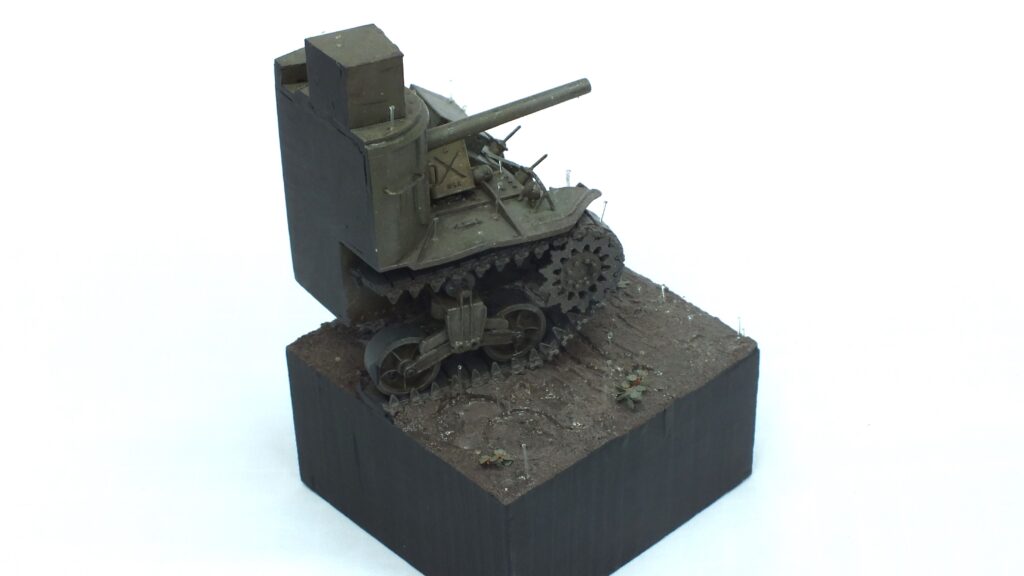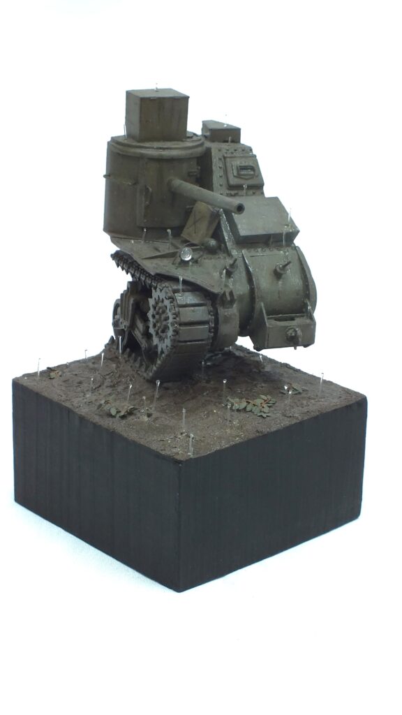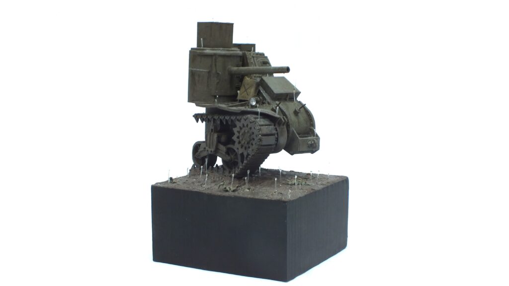 Last but certainly not least in this conversion I added small metal spikes to the base and bored appropiate holes through the running gear to hold the model with the addition of glue in an upright position.