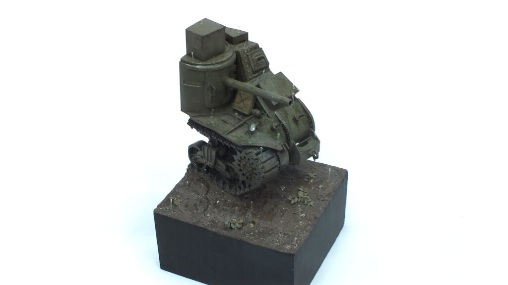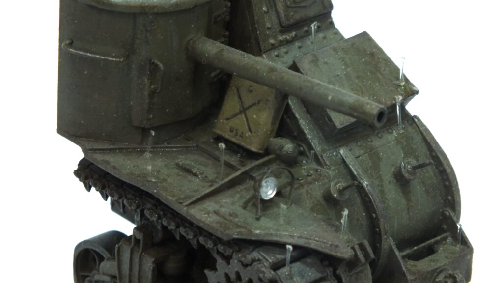 Well, now after I cleaned, washed, dried and primed him very thoroughly I could finally get started with base painting again, oh how much I looove this task. Yeah, doing my least favourit part again, and again, yippie. Anyways… I decided on a normal clean olive drab as the base coat without any camouflage. It is a very small modell with a lot going on and I really wanted to pull the attention to the rain-effects, which we will get to later.